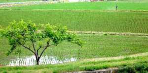 <能勢は田植えが終った。おじさんはあぜ道の草を刈っていました。 のどかな風景のようですが生活の一部なんですね・・・。>